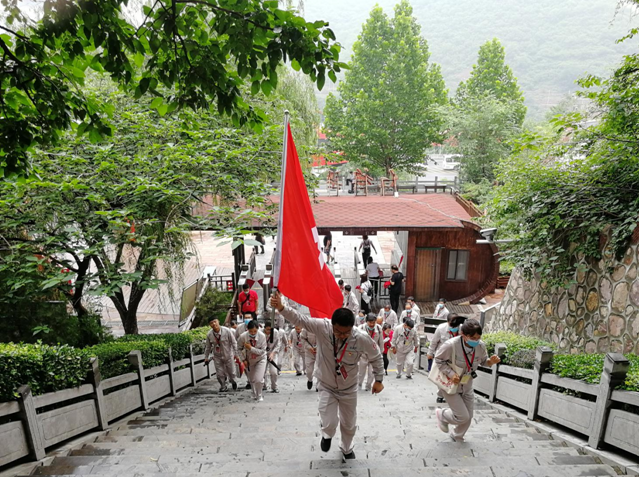 怀着崇敬之情,党员们重走红旗渠工程路线,瞻仰了修渠英雄雕塑、团结洞、青年洞等修渠遗迹;感受到了整个建渠过程的艰辛,一锤一钎,凿通隧道,架设桥梁,一往无前。走“红飘带”“水长城”,现场教学让学员们更充分的体验了林县人民历时十年在太行山上修建1500公里的人工天河是何等的艰辛,学员们对这条在困难时期修建的人工天河表示震撼,充满了无限敬畏。青年洞,是红旗渠的代表性工程。学员们登上总干渠渠岸,行走在不足两米宽的渠岸上,向前看不见头,向后看不到尾,抬头是陡立的峭壁,俯首是数丈高的悬崖。不经意间,已与英雄擦肩而过,号角嘹亮、踏遍青山、推独轮车等英雄的形象已凝固为雕像,融入太行红岩。蓦然抬头,青年洞就在眼前,这里昭示青春,也展示巍峨。