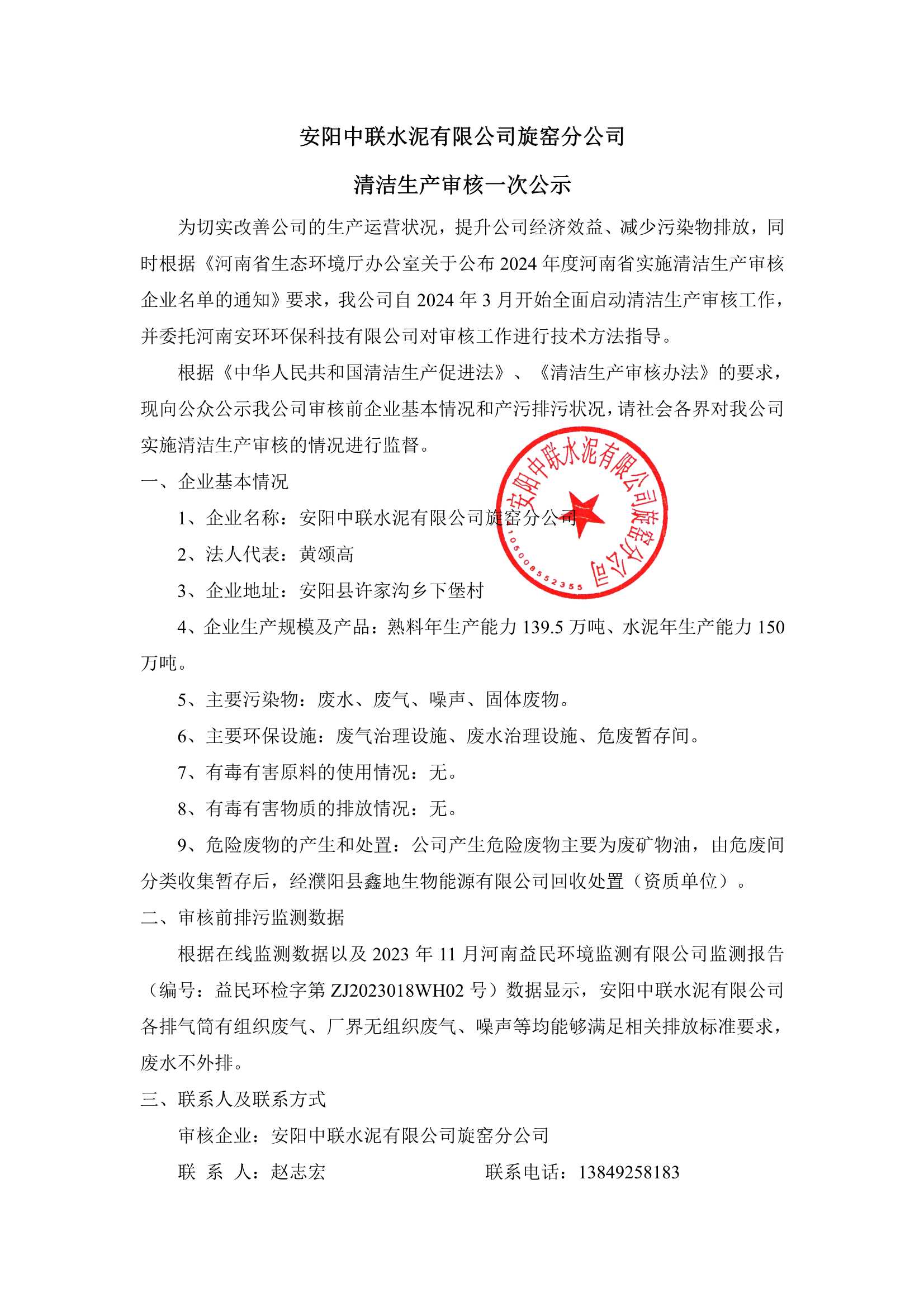 安阳K8·凯发水泥有限公司突发环境事件应急预案公示
